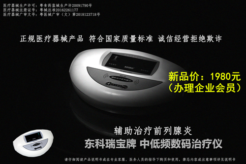 新近推出的東科瑞寶前列腺治療儀器為中低頻數(shù)碼治療儀,該產(chǎn)品為二類準(zhǔn)字醫(yī)療器械,采用多級(jí)性中低頻復(fù)合脈沖電流技術(shù),通過了國(guó)家YY0505標(biāo)準(zhǔn)電磁兼容檢測(cè),具有上電無輸出自鎖安保功能,操作簡(jiǎn)單,同時(shí)廠家還提供一年三包質(zhì)保的售后服務(wù)和“1對(duì)1”線上指導(dǎo)使用、會(huì)員積分禮品兌換、貨到付款等服務(wù),考慮到了用戶的不同需求,方便了用戶的購(gòu)買和使用。