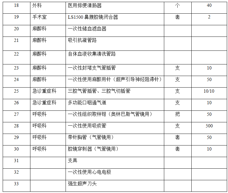 注意:資質(zhì)材料不完整、不合格的供應(yīng)商不予接受。另外,以下器械如有配套耗材必須提供相應(yīng)資質(zhì)。